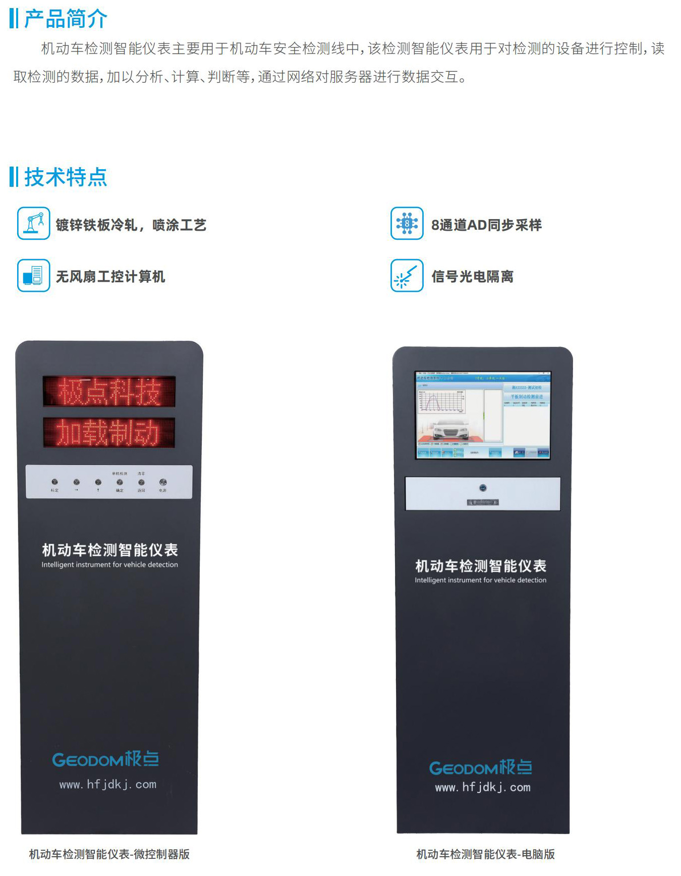 機動車檢測智能儀表主要用于機動車安全檢測線中,該檢測智能儀表用于對檢測的設備進行控制,讀取檢測的數據,加以分析、計算、判斷等,通過網絡對服務器進行數據交互。