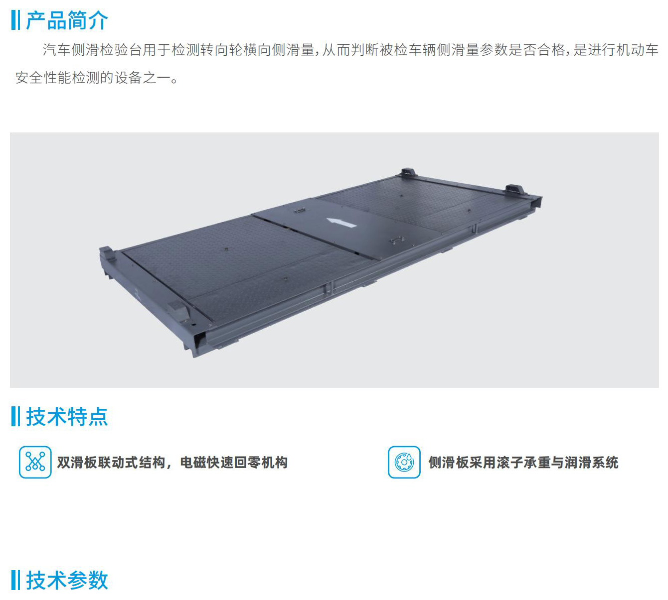 汽車側滑檢驗臺用于檢測轉向輪橫向側滑量,從而判斷被檢車輛側滑量參數是否合格,是進行機動車安全性能檢測的設備之一。